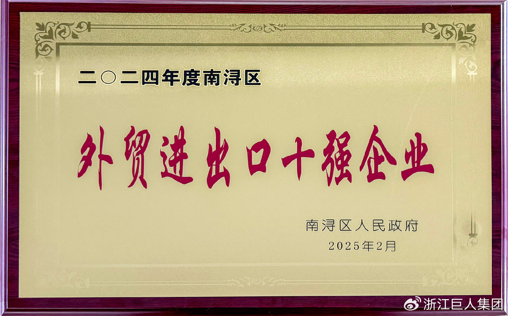 會上,巨人集團榮獲2024年度南潯區(qū)“新牛企業(yè)”、“工業(yè)企業(yè)稅收第十名”、“工業(yè)企業(yè)規(guī)模前二十強”殊榮,集團旗下巨美家科技榮獲“外貿(mào)進出口十強企業(yè)”稱號。自“新象新牛企業(yè)”表彰設(shè)立以來,巨人集團連續(xù)18年獲此殊榮,這是政府對公司過往工作的充分肯定,更是對企業(yè)未來發(fā)展的鼓勵和鞭策。