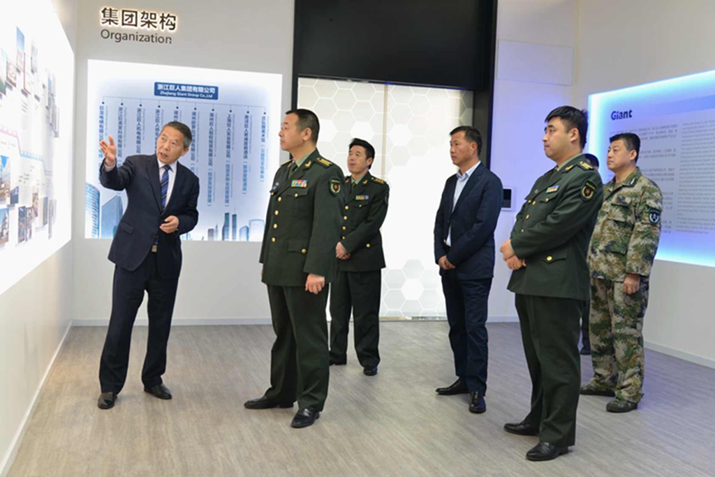 4月28日,湖州市軍分區(qū)政委傅斌大校,動(dòng)員處處長(zhǎng)谷炳方上校,南潯區(qū)人武部部長(zhǎng)沈威上校,區(qū)委常委、人武部政委支德永上校,區(qū)委常委、開(kāi)發(fā)區(qū)黨委書(shū)記陳純志一行蒞臨浙江巨人集團(tuán)有限公司,在黨委副書(shū)記、副總經(jīng)理高宇等公司領(lǐng)導(dǎo)陪同下,就民兵組織建設(shè)工作開(kāi)展調(diào)研。