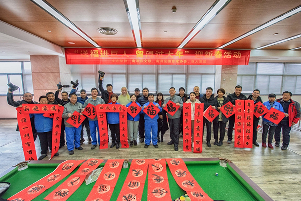 2月1日,由南潯區(qū)文聯(lián)和南潯區(qū)攝影家協(xié)會主辦的“送福進巨人,留潯過大年”迎新春活動在巨人集團員工餐廳熱鬧開場。主辦方邀請多位南潯區(qū)知名書畫家為員工送上節(jié)日祝福。