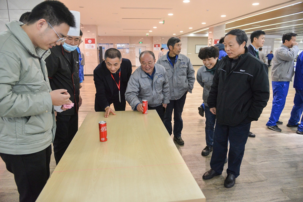 “加油、加油”,一片熱烈的應(yīng)援聲中,“推推樂”拉開了活動序幕,大家緊盯著一聽飲料,只見它被參賽者從桌子一端推了出去,卻在離終點線毫厘之差的地方“踩了急剎”,惹得大家一聲嘆息。狀況百出的“抽抽樂”收獲了一片歡聲笑語,兩個紙杯中間的紅紙成為獲勝關(guān)鍵,員工們紛紛摩拳擦掌,躍躍欲試。“猜燈謎”作為活動重頭戲,現(xiàn)場更是人群涌動,字謎內(nèi)容集知識性、趣味性和思考性于一體,吸引大家踴躍參與,員工們或低頭深思,或激情討論,猜中的員工展露笑容、興高采烈地兌獎,活動現(xiàn)場激情高漲。