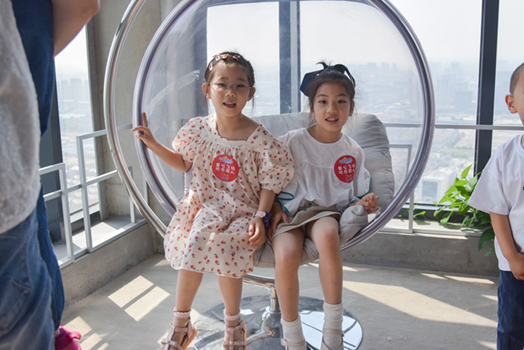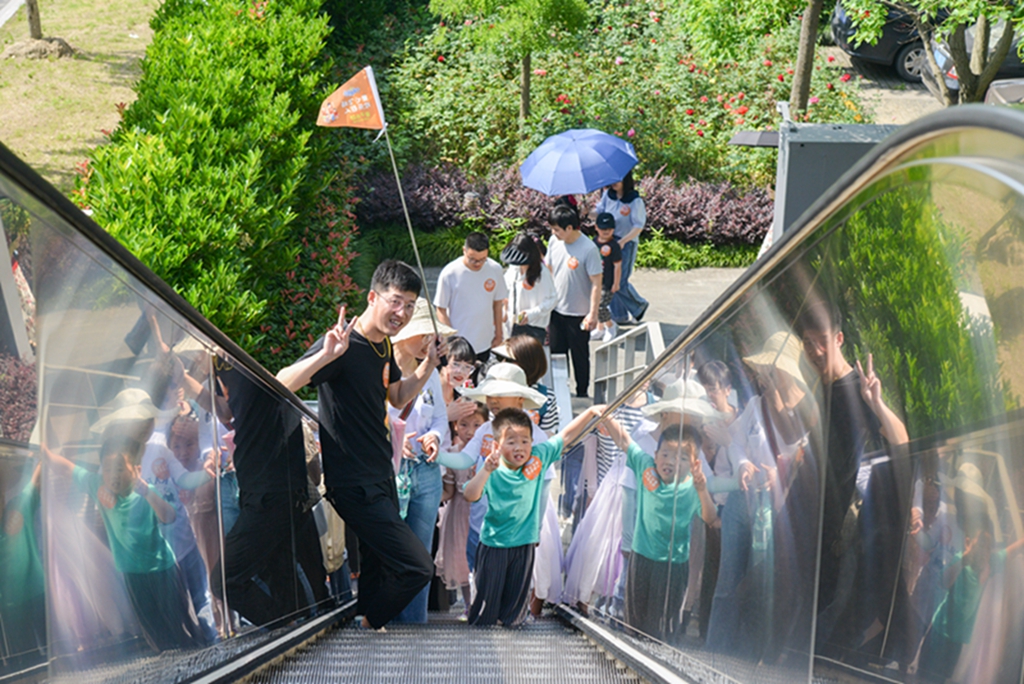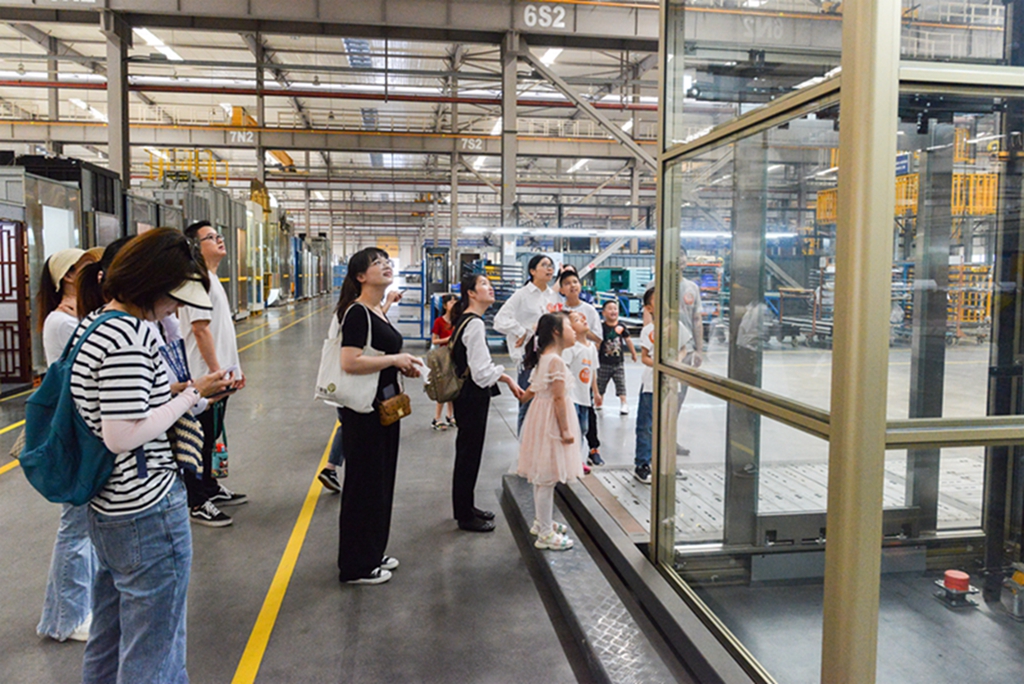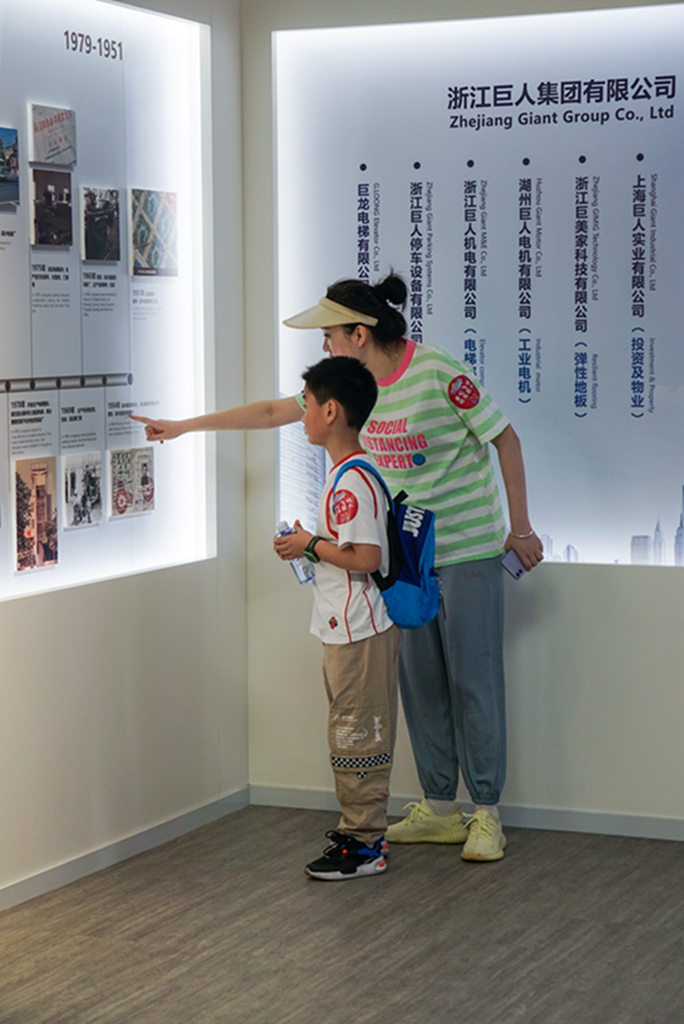 巨人企業(yè)館陳列了企業(yè)發(fā)展歷程和各業(yè)務(wù)板塊的圖文影像介紹及實物展示,這里可以跨越時間和空間,全面了解巨人的企業(yè)概況。志愿者將“巨人”的故事娓娓道來,讓孩子們感受“巨人”大家庭的溫情和父母職業(yè)的榮耀,也增加了對科學(xué)技術(shù)和人文知識的了解;寬廣敞亮的生產(chǎn)車間,一臺臺先進設(shè)備整齊排列,呈現(xiàn)了巨人工廠的生產(chǎn)規(guī)模,志愿者帶著孩子們隨行隨講解,引得孩子們連連贊嘆;巨龍電梯試驗塔高達188米,孩子們歡呼雀躍地乘坐電梯直達觀光層,凌空遠眺南潯美景,不禁心曠神怡。