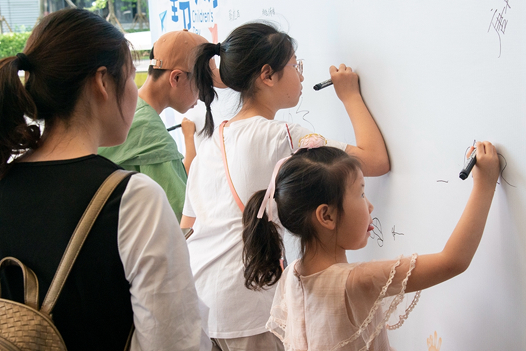 每一個家庭分別編入紅、藍、黃、綠、紫五個小組,在志愿者的引導(dǎo)下,孩子們由家長陪伴,開啟了探索“巨人”之旅。